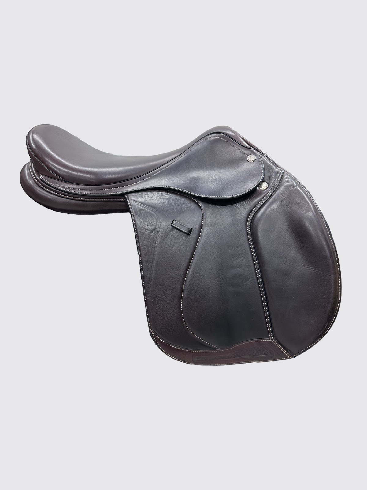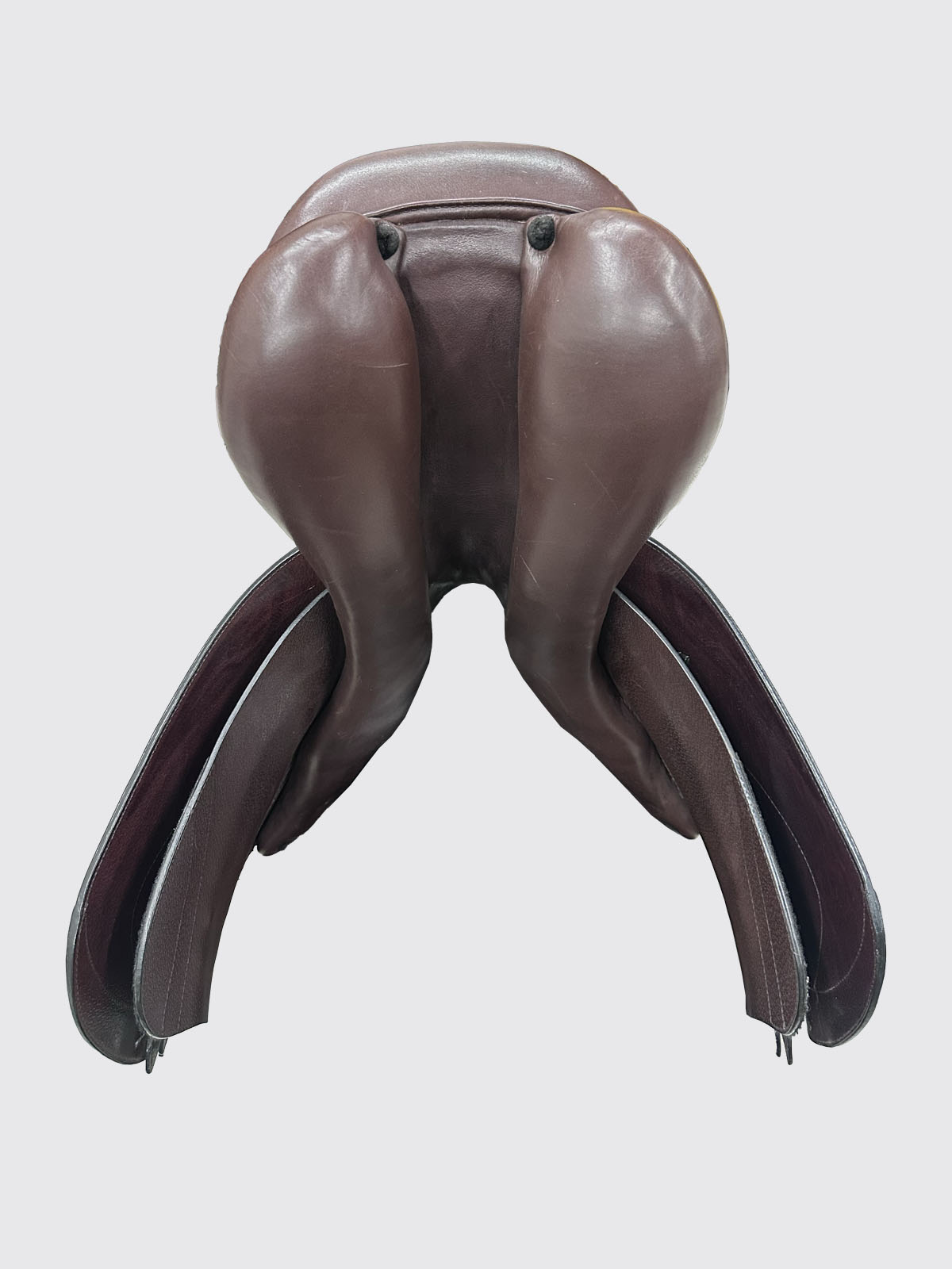 This American Hunter Saddle with a size 16 seat and large tree is designed for a more open hip angle with a longer leg. This saddle features a narrow twist with a slightly wider seat and a molded, padded flap with T-foam. Sold as is, in good condition.