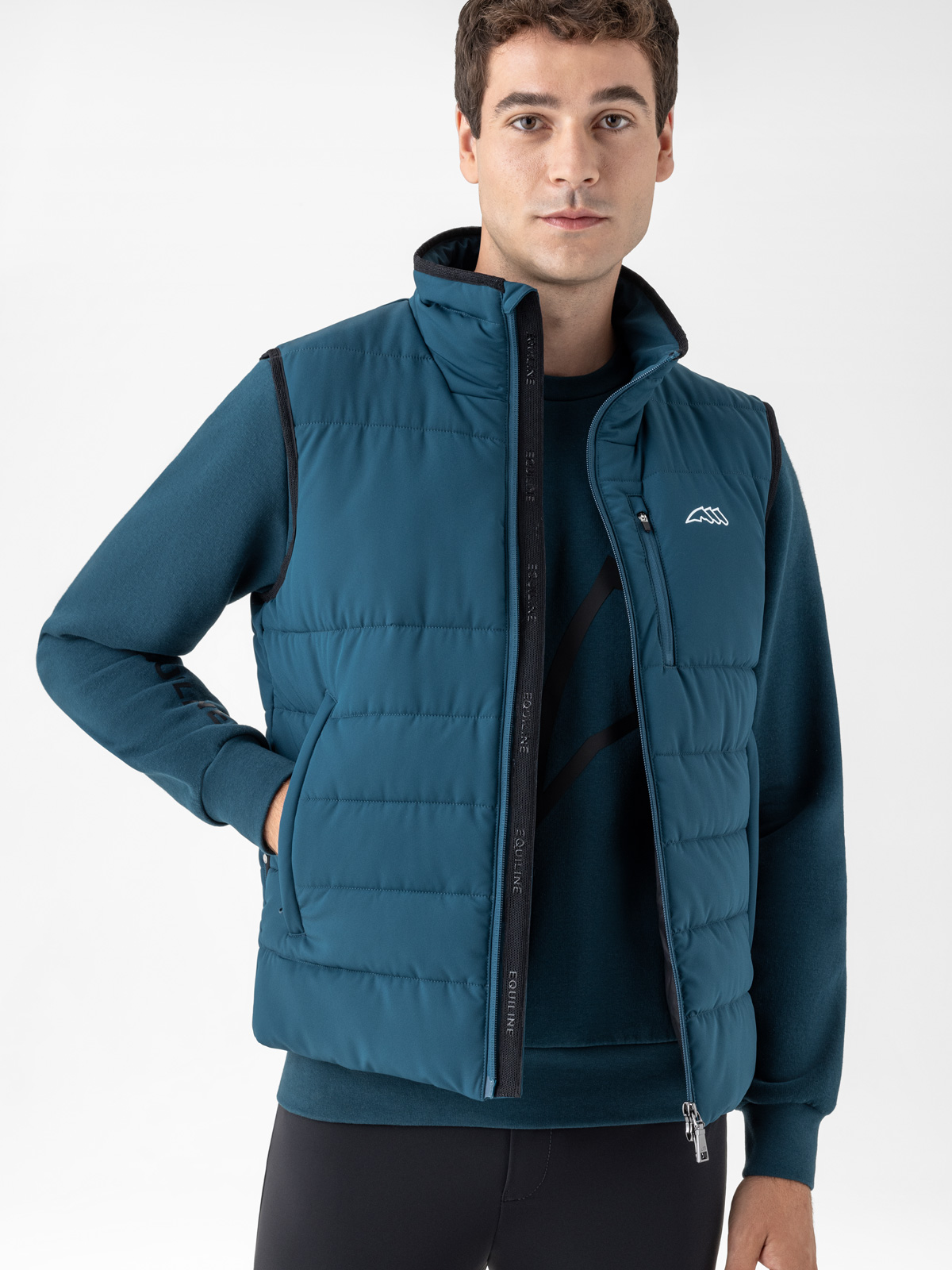 Stay warm and versatile with the Eguit Men’s Padded Vest. Insulated with Eco-Duvet made from recycled PET bottles, this medium-weight vest offers warmth and comfort. It features two zipper pockets, a two-way front zip, and is adorned with a printed logo on the chest and a quilted logo on the back shoulder. Ideal for layering, this gilet is perfect for both riding and everyday wear.