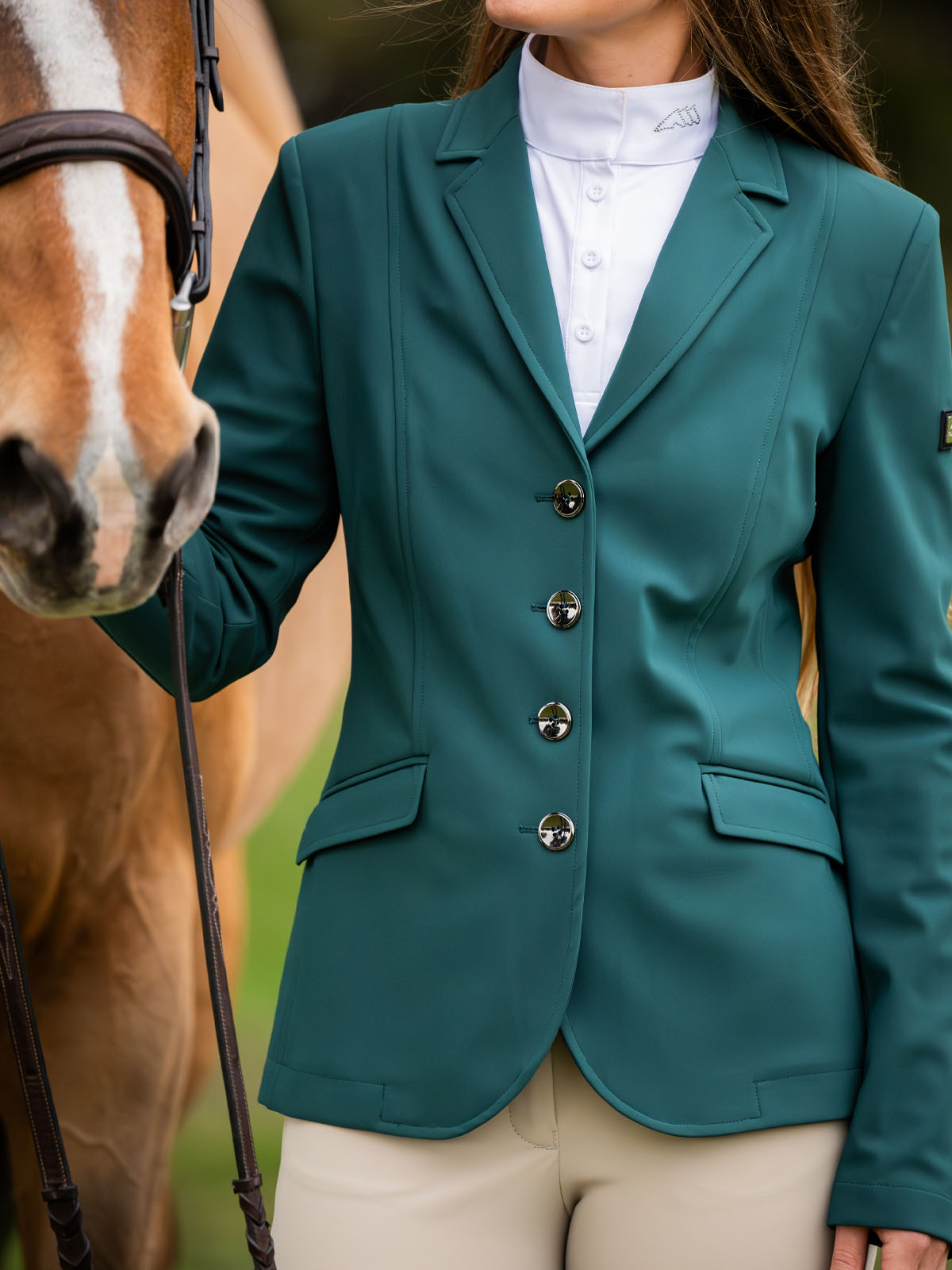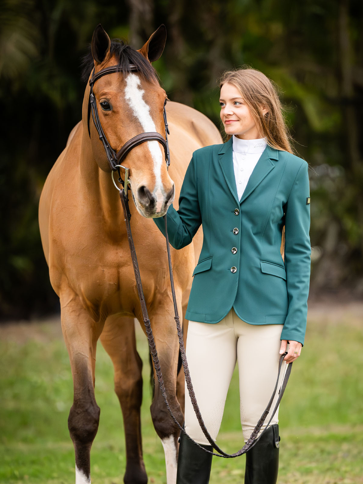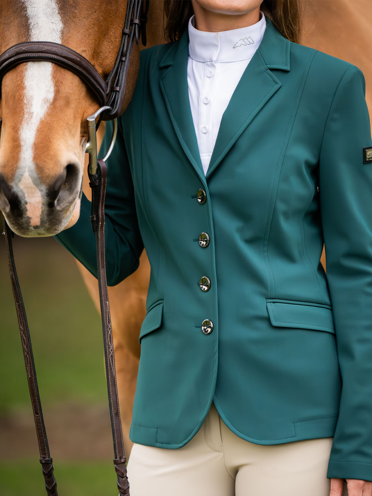 The Elyssa Show Coat combines Italian style and innovative design. This unlined, unstructured coat is handmade in Italy and showcases that perfect Italian tailored look. These exclusive special colors are only available for the US Market. Made with Equiline’s revolutionary B-MOVE fabric that offers breathability, stretch and water-repellent for a comfortable and cool ride.