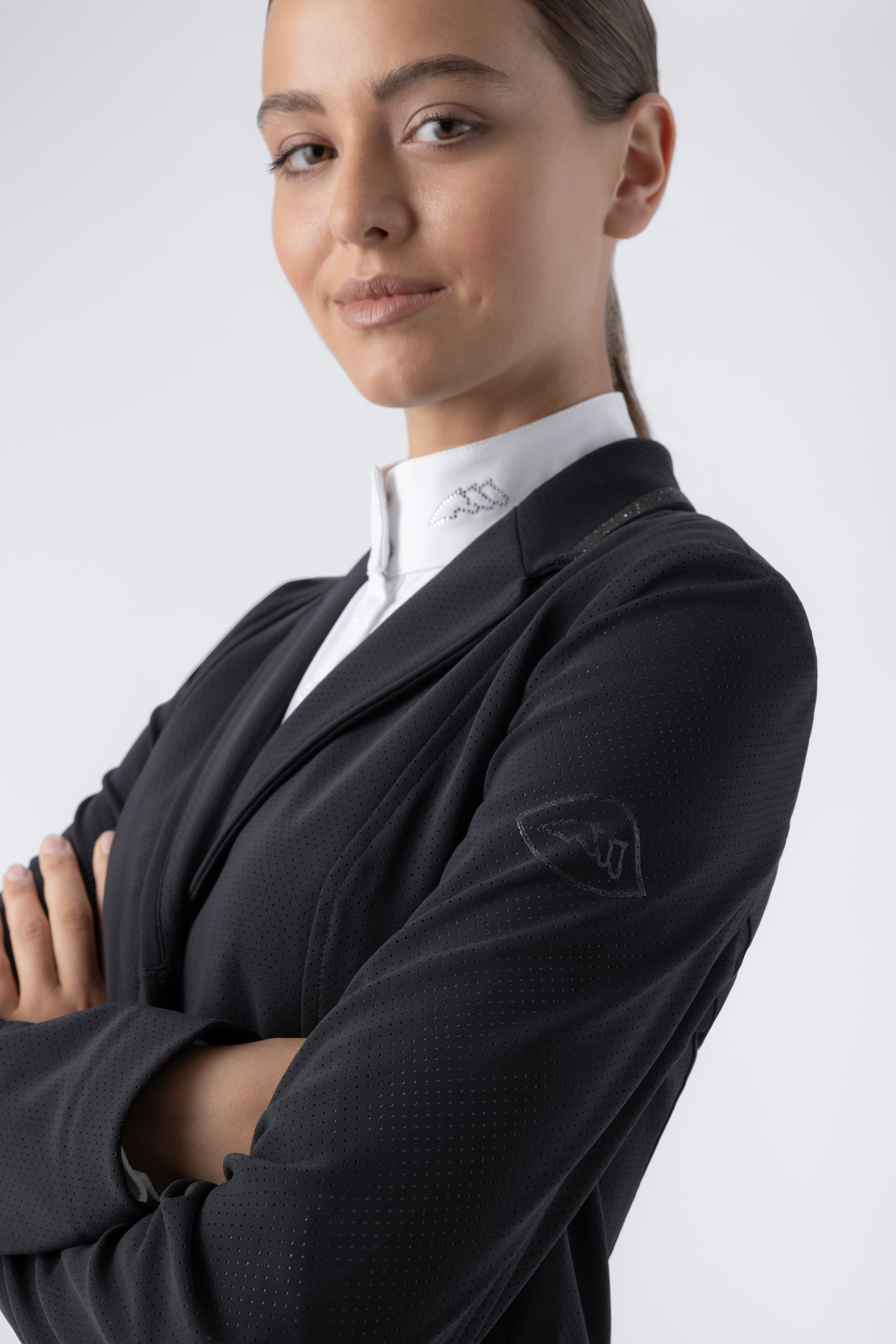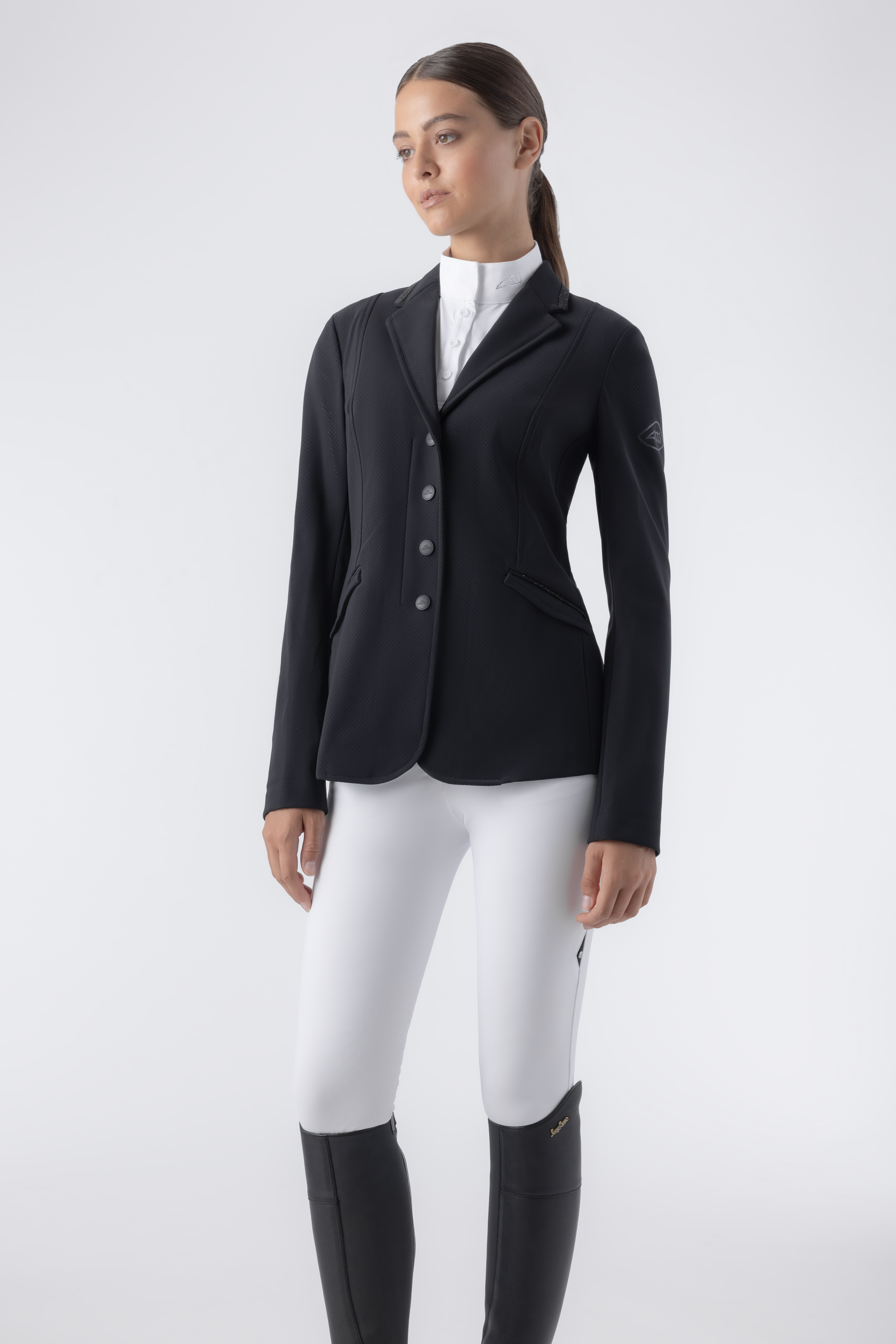 Performance meets elegance in this competition jacket for women. Made from B-Move stretch, breathable fabric, it ensures maximum freedom of movement and all-day comfort. The unlined construction enhances its lightness, while Swarovski crystal fabric details on the collar and pockets add a refined touch of brilliance. Airbag compatible and engineered with UPF 50+ sun protection and quick-dry technology, it’s built for high-performance with unmistakable style.