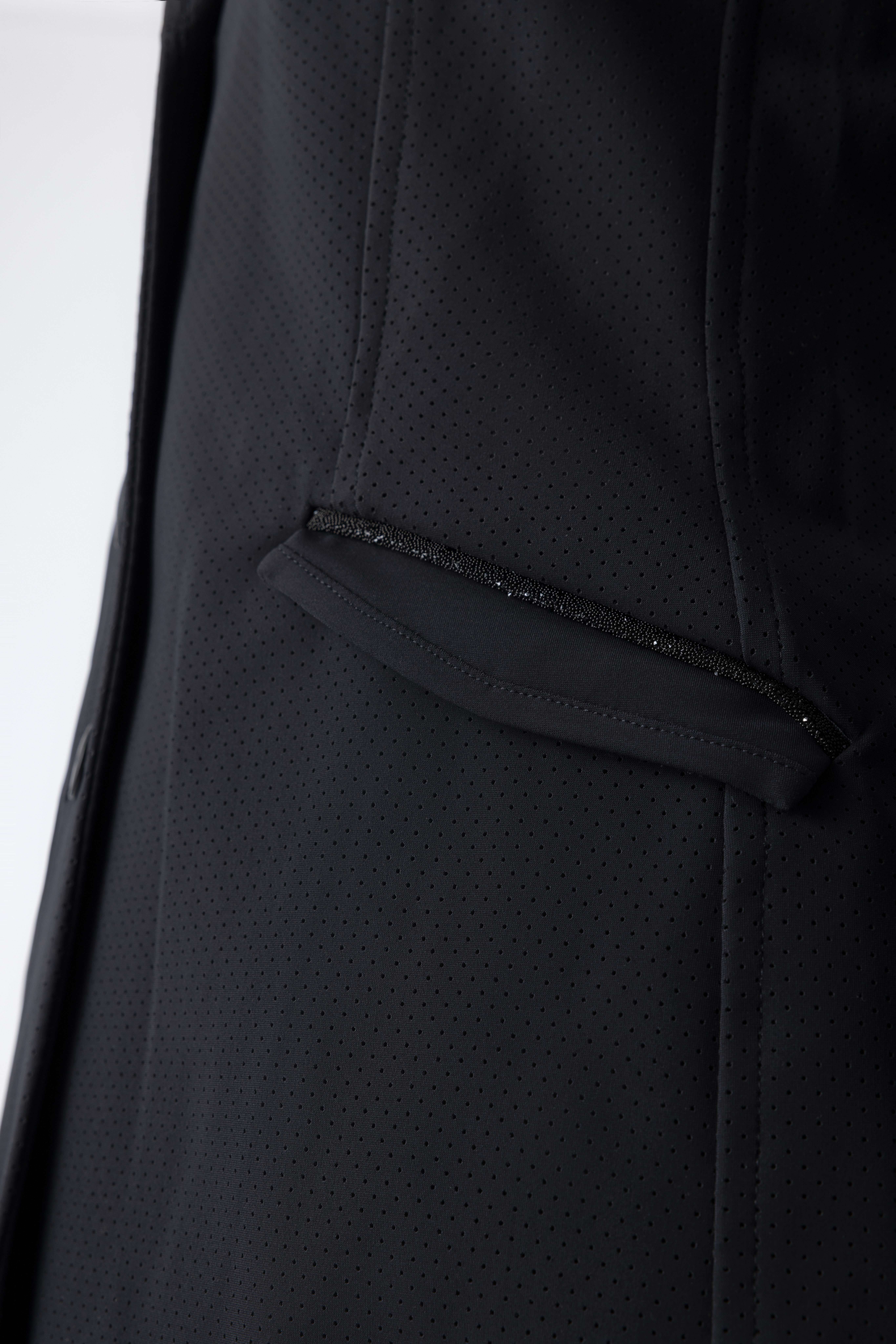 Swarovski crystal fabric details on the collar and on the pockets